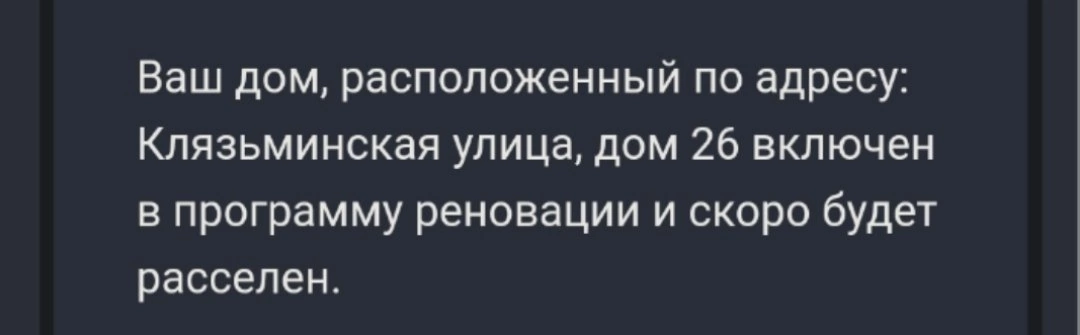 "Клязьминская, 26, переезжает по реновации на Долгопрудную, 10!