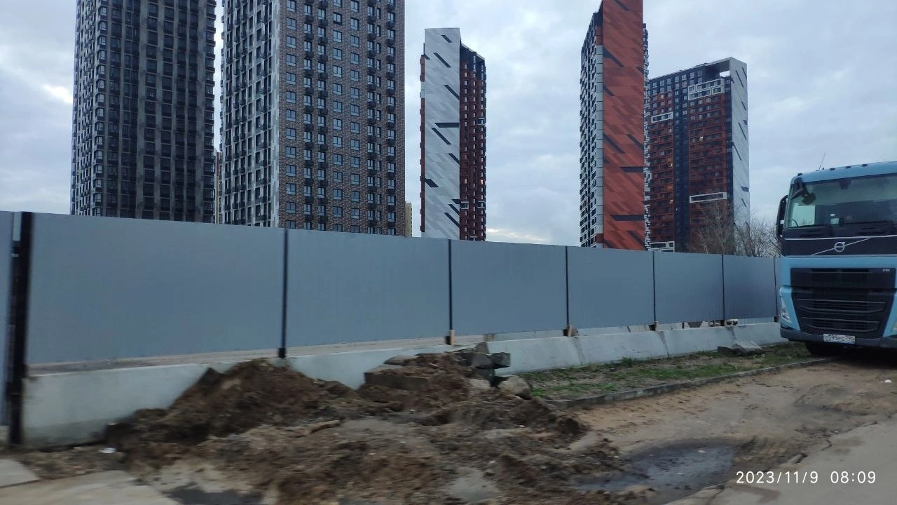 "На Открытом шоссе, 14, готовят площадку для дома по реновации — поставили забор. Скоро начнут строить."